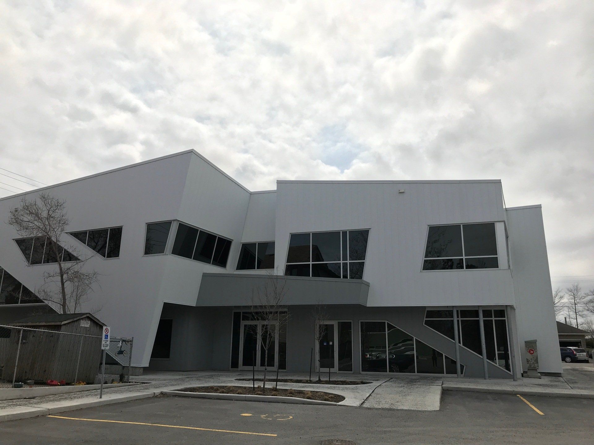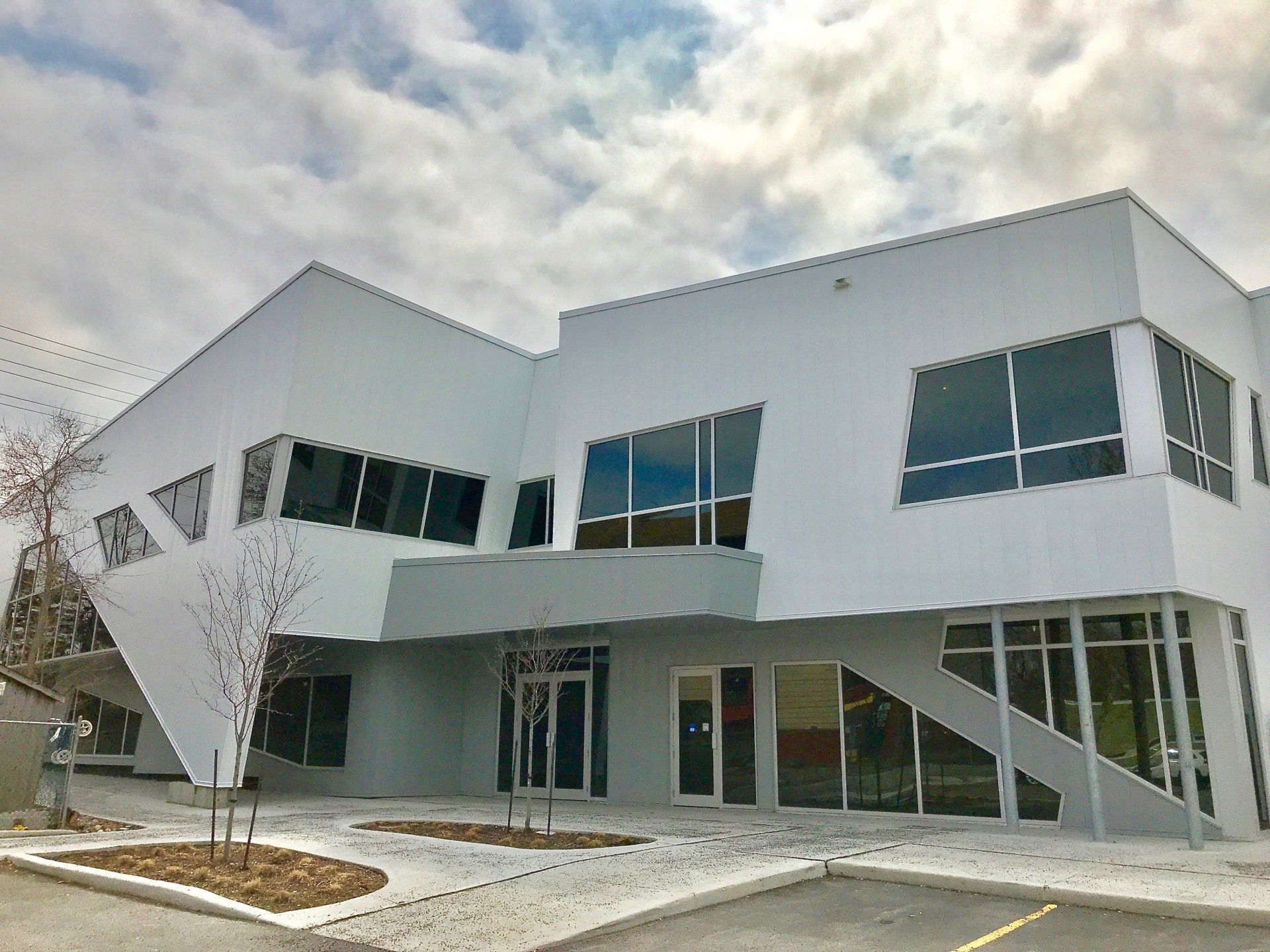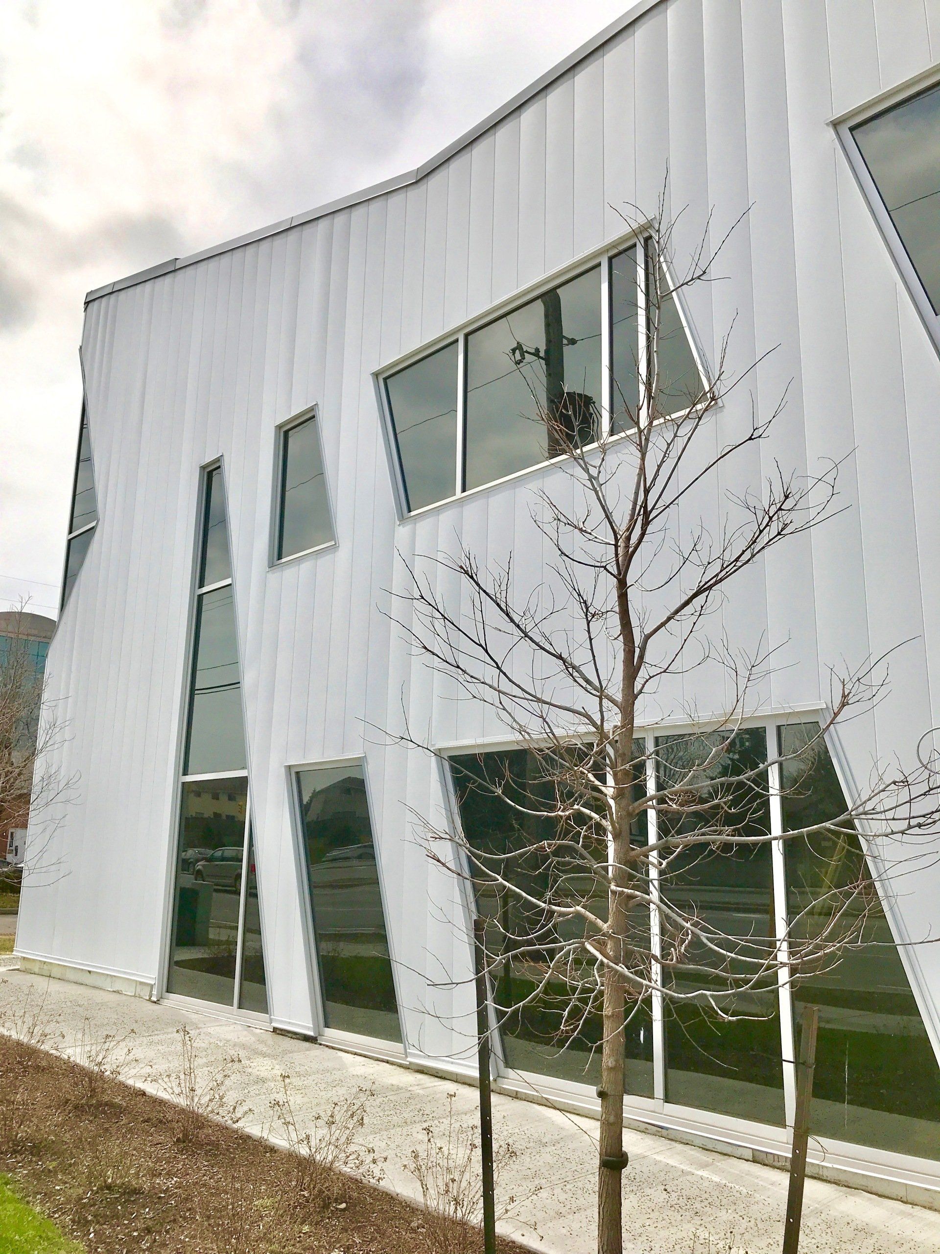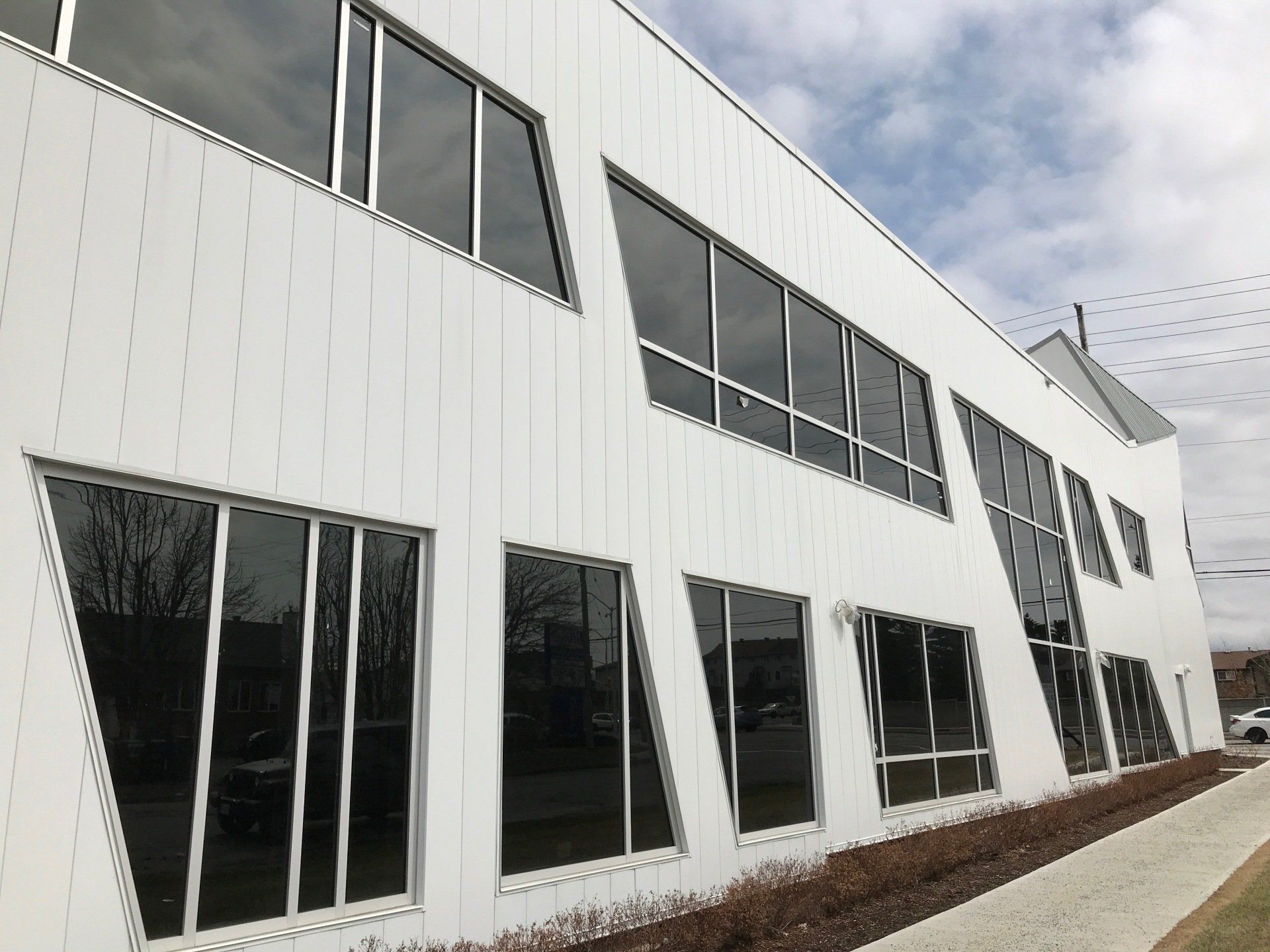 No matter what your angle is, we have your solution! Here is a unique office building we did in Ottawa, ON using curtain wall windows. Throughout this project we used a combination of thermal glazing, spandrel glazing and sloped glazing.