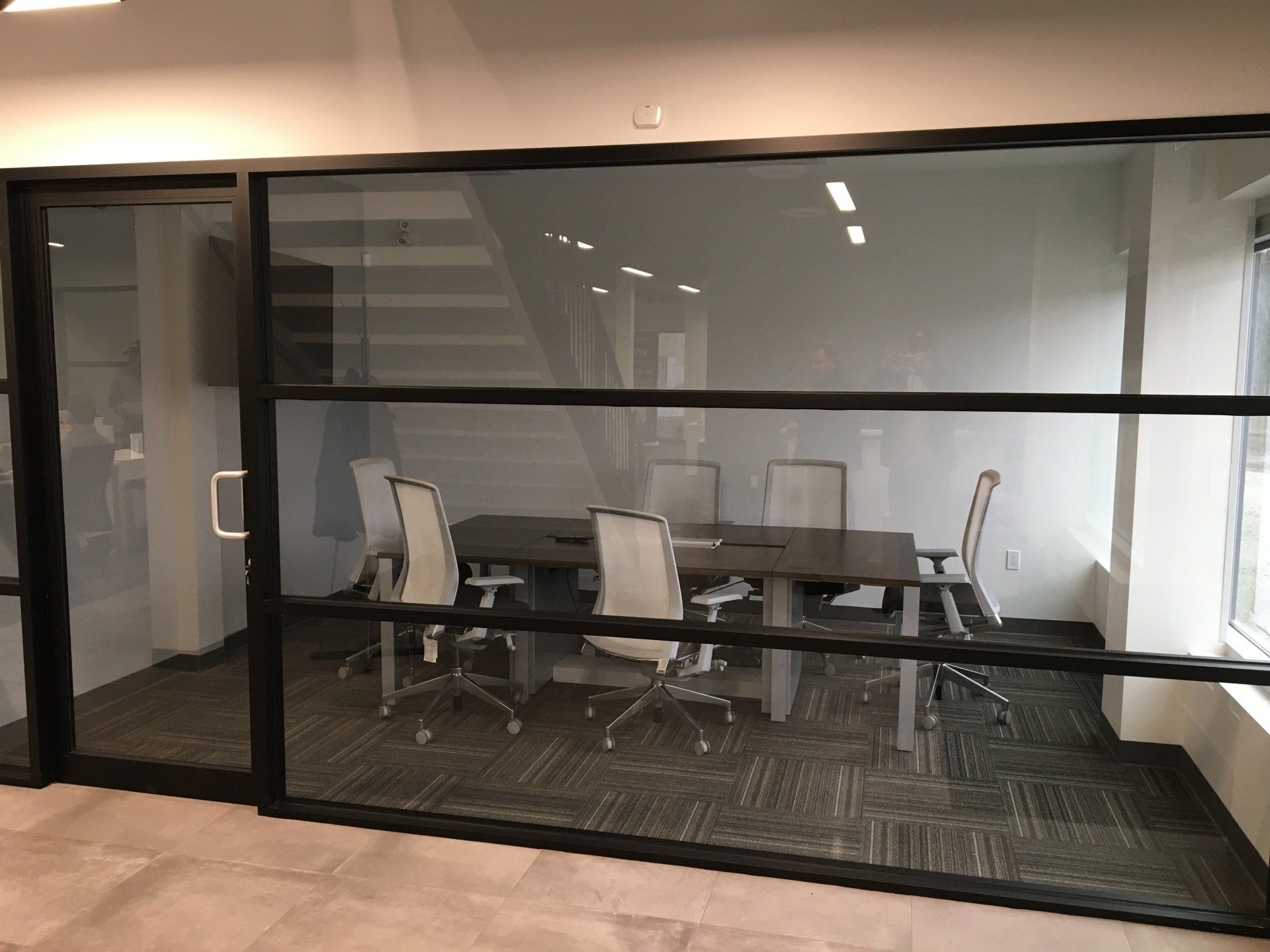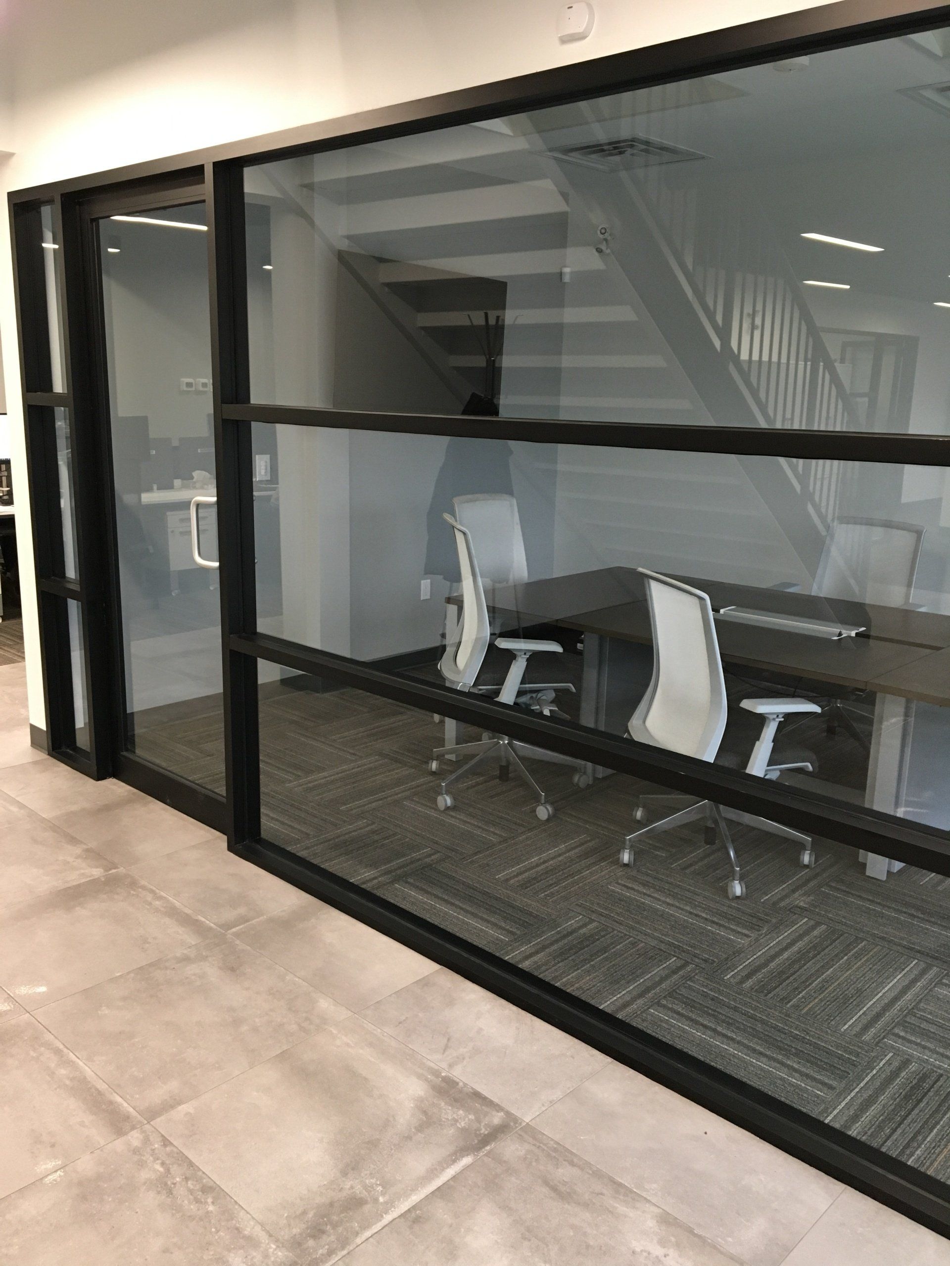 Take a closer look at some glass partitions we installed in a new office building located just outside of Perth, ON using a flush glaze system. Let us provide you with a quote on your next office renovation.